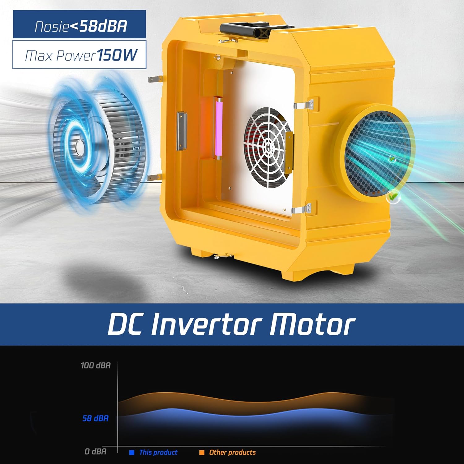 Der Air Scrubber ist ein leistungsstarker Luftreiniger mit 3‑Stufen‑Filtersystem und stufenlos regelbarer Drehzahl dank DC‑Inverter‑Motor. Mit einem Volumenstrom von bis zu 800 CFM eignet er sich ideal für gewerbliche Anwendungen wie Baustellen, Renovierungsbereiche oder Werkstätten. Für starke Luftreinigung bei minimaler Geräuschentwicklung – robust und effizient.